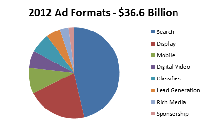Web or Digital video advertising is another growing hot trend and secured the fourth position in terms of ad revenues just after mobile. Revenues from Web video reached the $2.8 billion mark in 2013, 19 %higher than that in 2012.