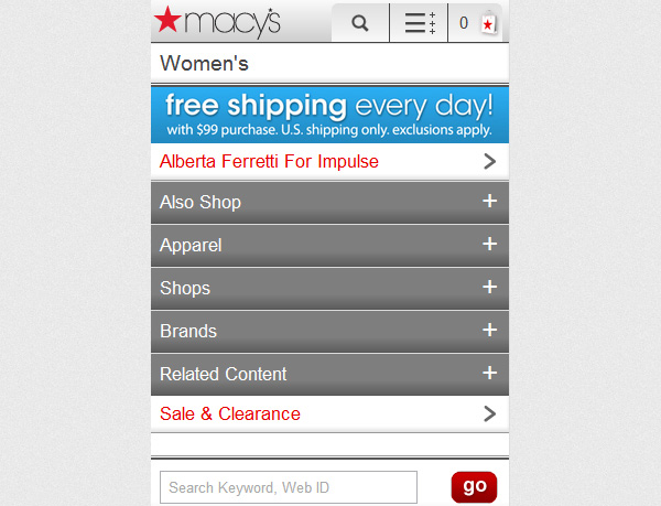 Searching for the product you want can be frustrating when there are lists of categories and only 2-3 products can fit per page. A search box at the top of the screen will help customers who know what they want find it immediately. - Use the same wording across both platforms