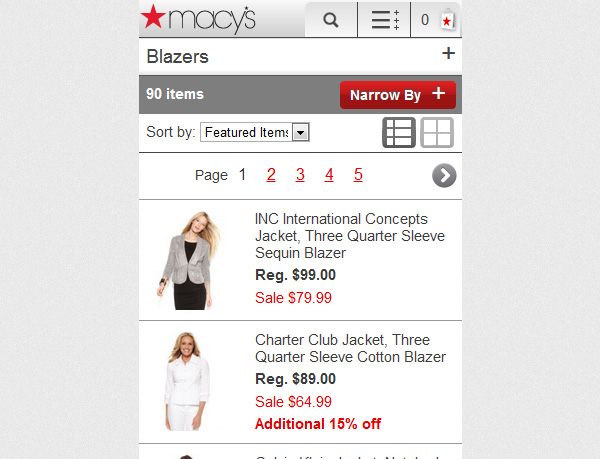If a customer is going to use your search box to find a product, your product descriptions in your mobile website need to match those on your online ecommerce store. Ensure headlines at least contain the same keywords and description metrics like size and colour. - Optimise the number of products displayed per page